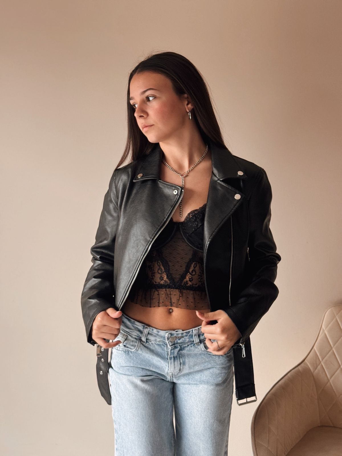 Campera de cuero corta. Su interior esta forrado. La calidad es premium. Detalle en cintura de cinto regulable. Cierres de excelente calidad.