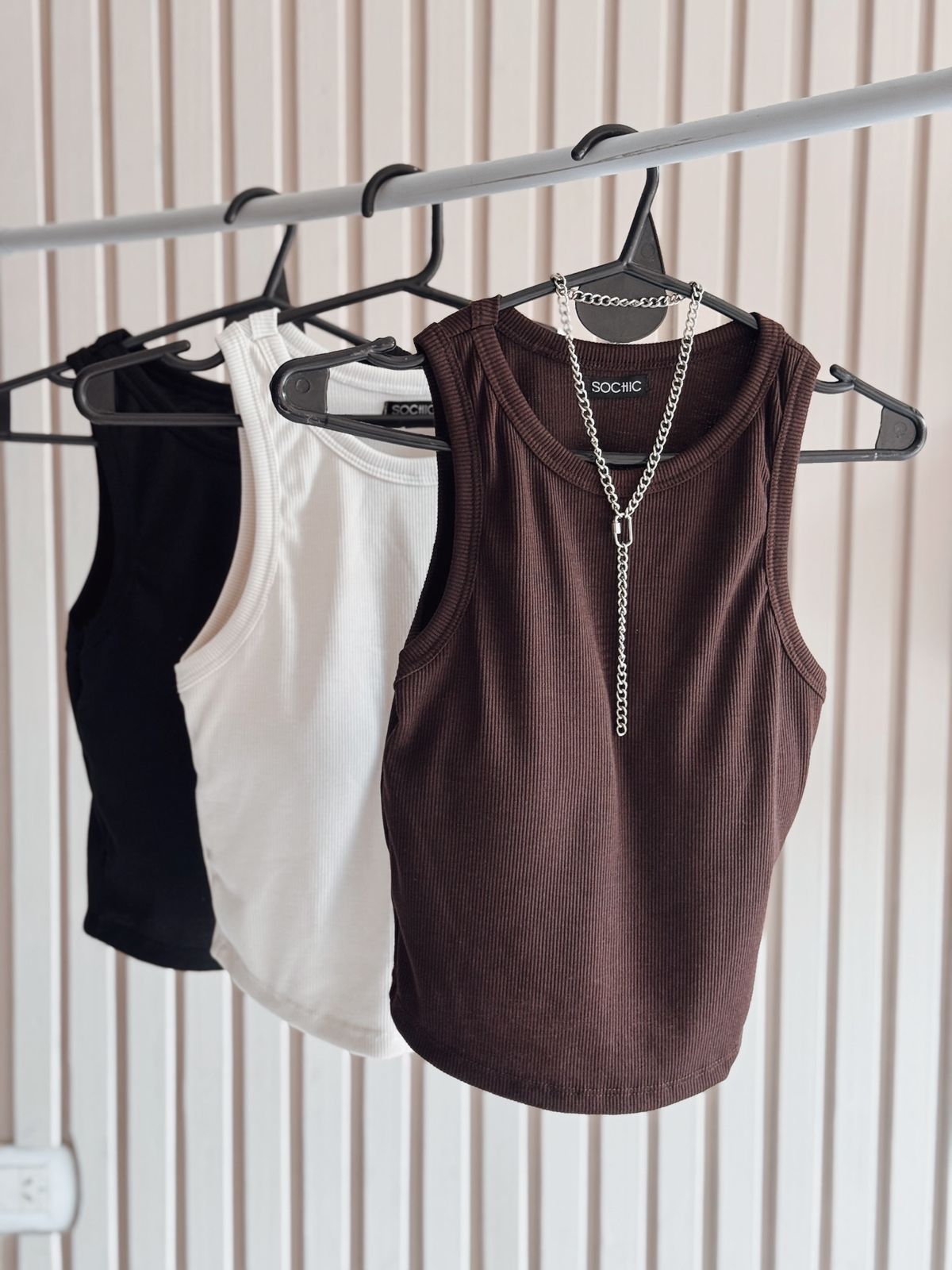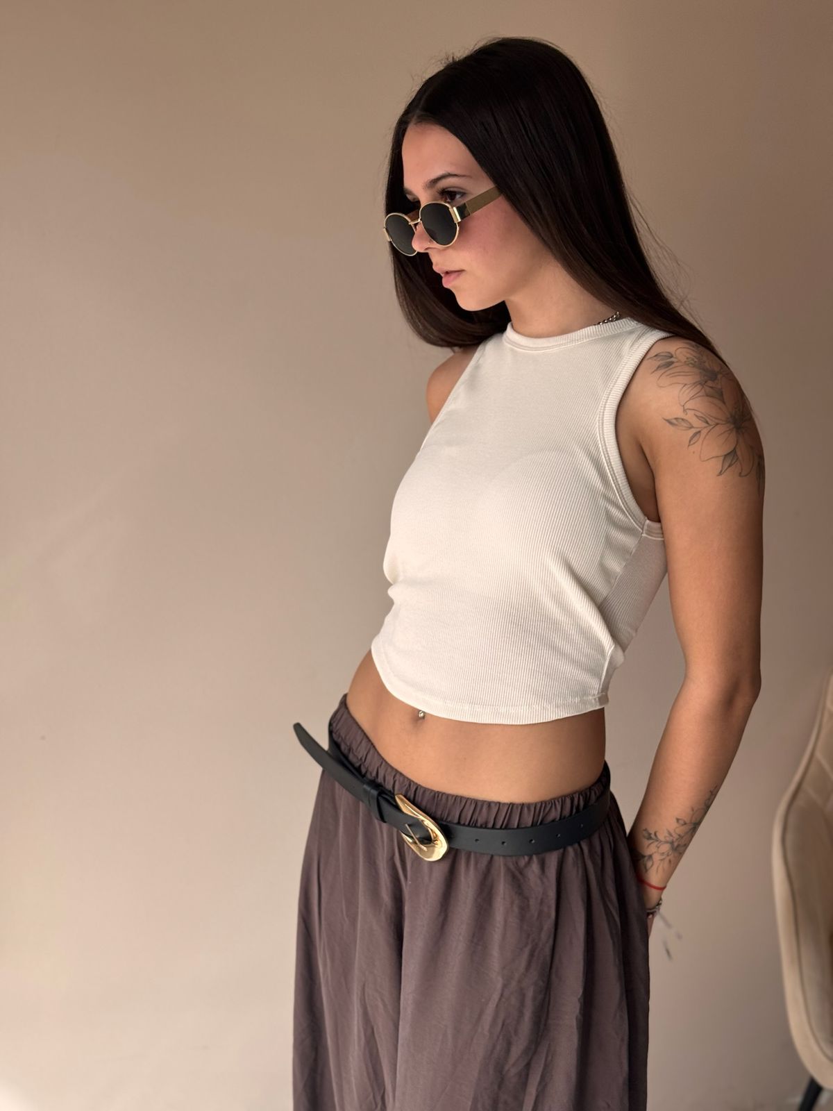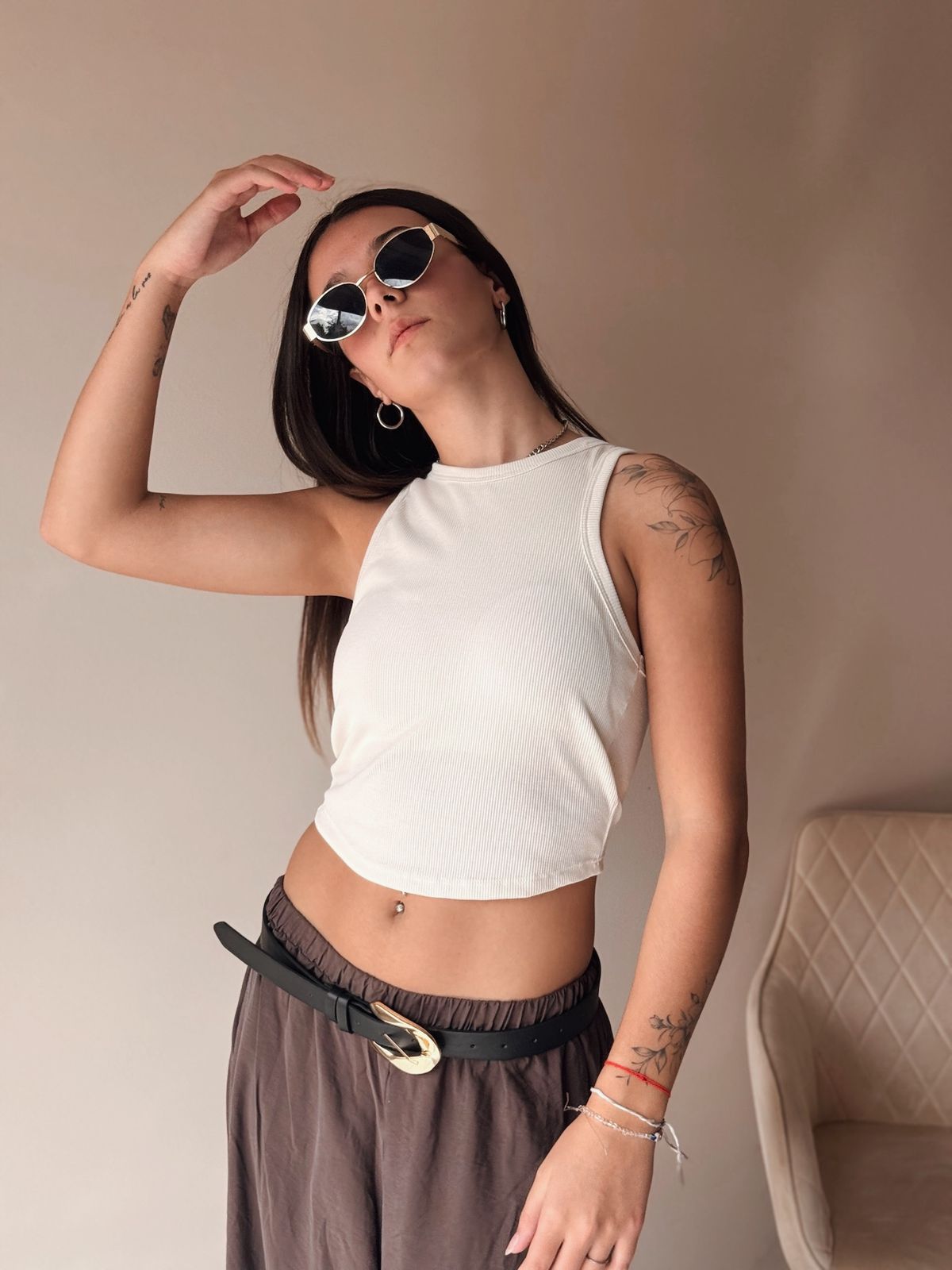 Musculosa de morley elastizada con tazas. El talle abarca hasta un L.